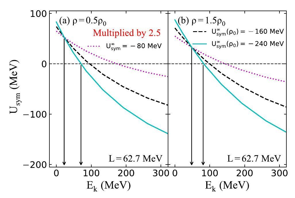 To date, one might wonder whether the symmetry potential at 1.5ρ0 (i.e., attainable maximum densities in the compression stage) with a certain L but varying