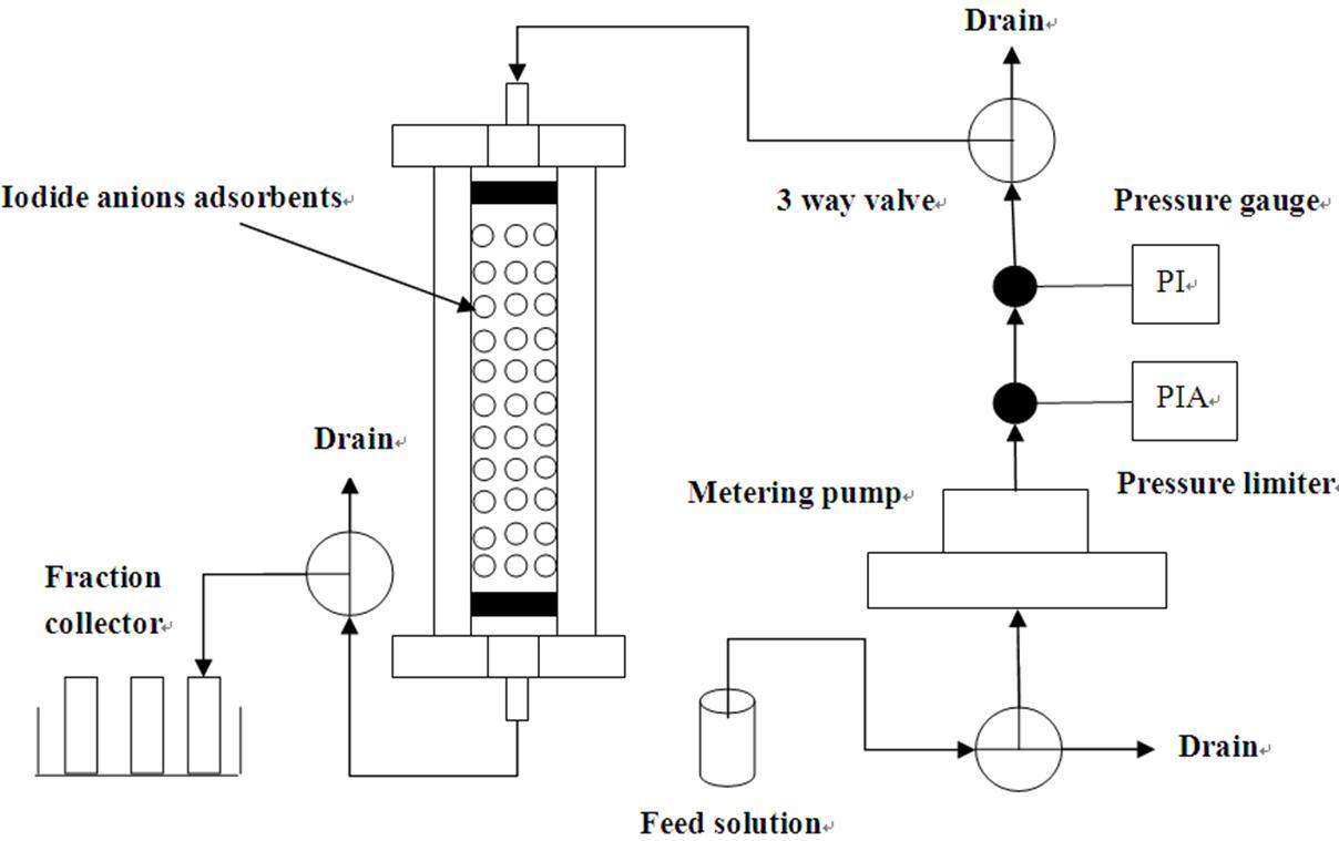 The static experiment adsorption behavior of tested iodide anions on the adsorbent was examined by batch experiments using Ag(tu)3NO3/SiO2-P. An aqueous phase (5 mL), containing varying iodide anion concentrations, was equilibrated with 0.1 g adsorbents in stopper glass tubes in a thermo state water bath (Tokyo RIKAKIKA Co.LTD) at room temperature. The concentration of the tested iodide anions before and after adsorption was measured by ICP-AES(Shimadzu 7510). The adsorption capacity at equilibrium (Qeq) can be calculated using the following formula:
