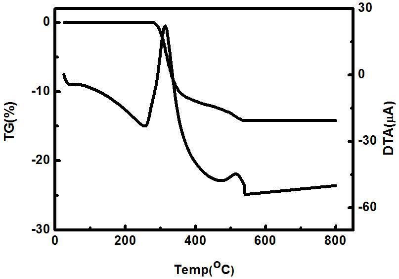 The results of TG and DTA for Ag(tu)3NO3/SiO2-P are shown in Fig. 5. It indicates three different weight loss ranges: the first and second weight losses denoted the burning of the SDB polymer, similar to those of Fig. 4. The third weight loss (400–550 ℃) was interpreted as the thermal decomposition of the silver complex of thiourea. The corresponding endothermic peak around 540 ℃ was also observed.