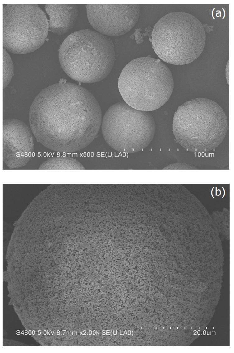 To investigate the pore size effect on properties of the resins, the silica particles in mean pore size of 50 nm were also used in synthesis of SiPyR-N3.