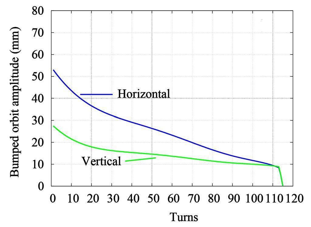 beam loss occurs. To avoid beam loss, the amplitude of the bumped orbit must satisfy: