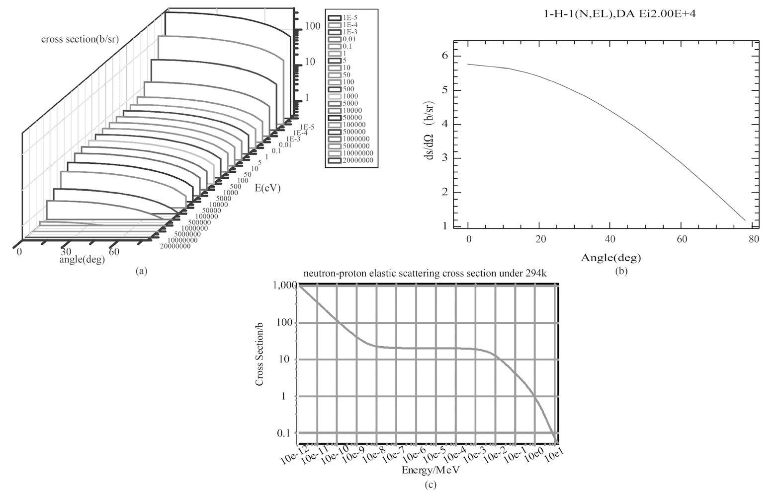 First, the sampling rule used in the Monte Carlo simulation was obtained from the cross-section library. The evaluated nuclear data file ENDF/B-VIII.0 stores the neutron reaction cross-section information. From the ACE format [28] database, the reaction type and angular distribution [29] of the reaction can be determined. It can be determined from the cross-section data of neutrons and 1H that the type of n–p reaction is mainly elastic scattering. The inelastic reaction type cross section is 2 ∼ 5 orders of magnitude smaller than the elastic scattering cross section, so that the inelastic reaction can be ignored when simulating the reaction between 1H and neutrons.