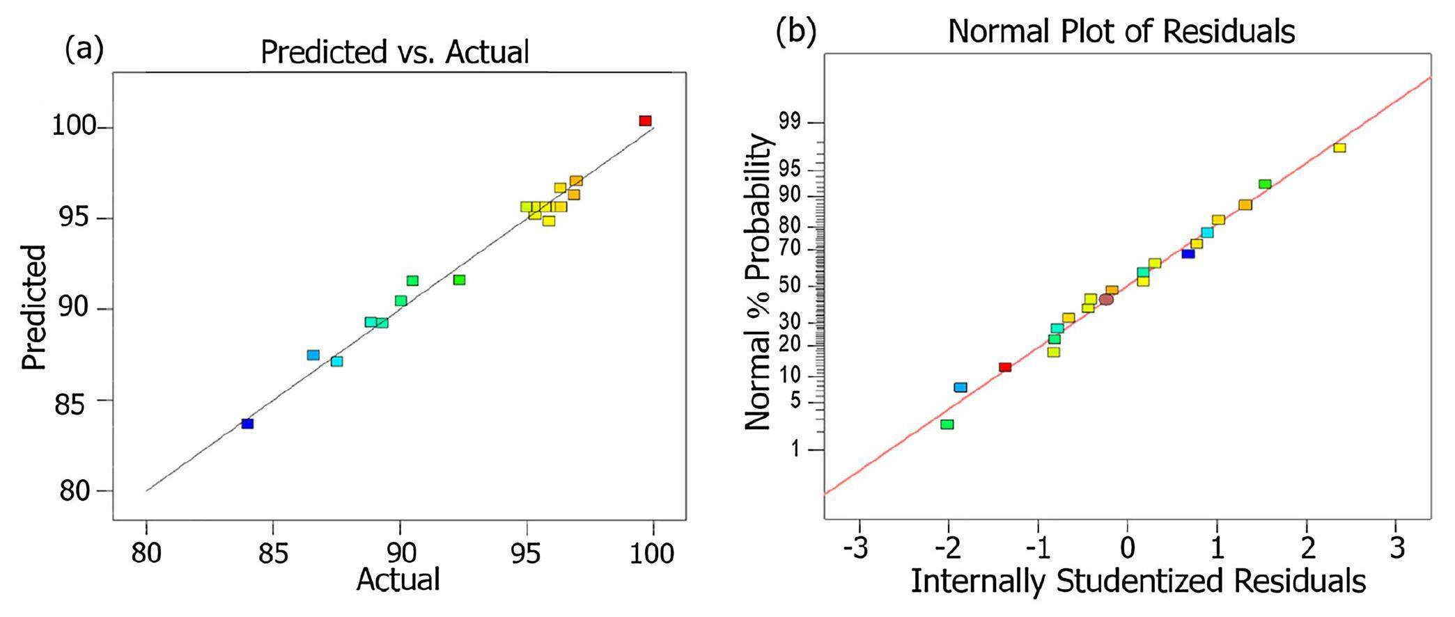 Finally, the reliability of the response surface model was assessed by analyzing R2 (coefficient of determination) and